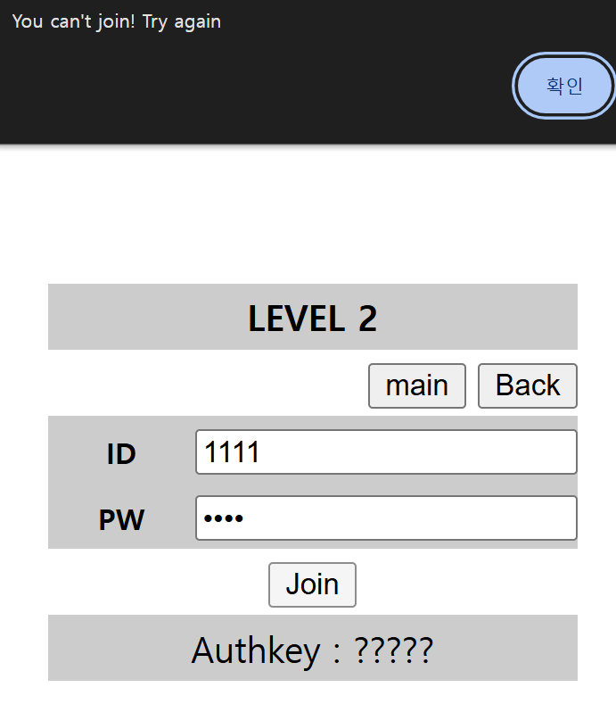 id와 pw 입력란을 비우며 다시 입력하도록 유도합니다.