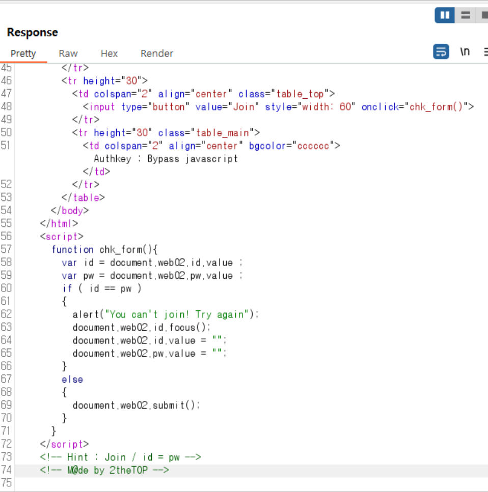 if ( id == pw ) 조건문은 id와 pw가 동일한지를 확인