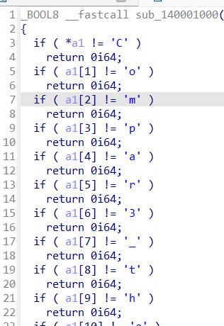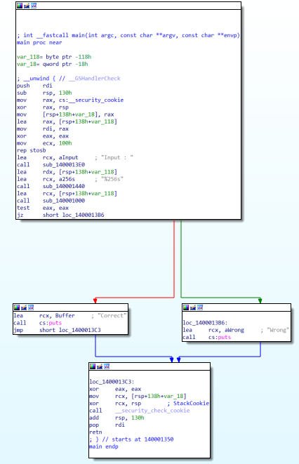 그럼 제일 중요한 부분은 sub_140001000이겠네요, 여기서 비교를하고 결정을 내리는 부분이니..