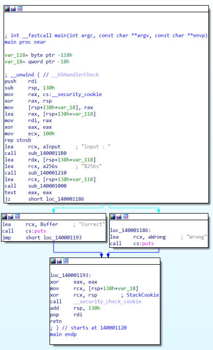 입력받은 값이 sub_140001000일경우에 Correct를 출력한다는 것을 알 수 있습니다. sub_140001000에 대해서 자세하게 들어가보겠습니다.