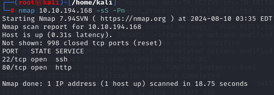 nmap으로 어떤 포트가 열려있는지 확인해보니 22번, 80번 포트가 있고 둘 다 열려있는 것을 확인했다