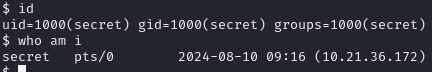 secret 사용자로 10.10.185.84라는 IP 주소를 가진 원격 서버에 SSH를 통해 접속을 시도해봤더니