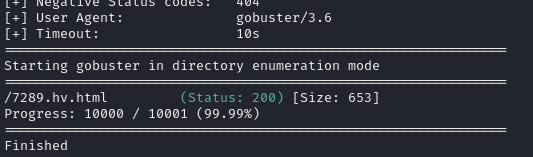 Finished를 출력하며 공격이 끝났는데 7289.hv.html만 성공적으로 요청되었다고 받았다