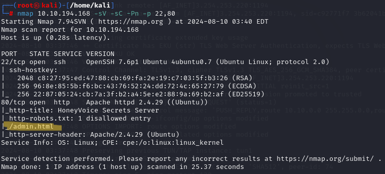 nmap의 기본 스크립트 중 하나가 http-robots.txt 파일을 찾아서 웹 서버의 robots.txt 파일에서 중요한 정보를 발견했다