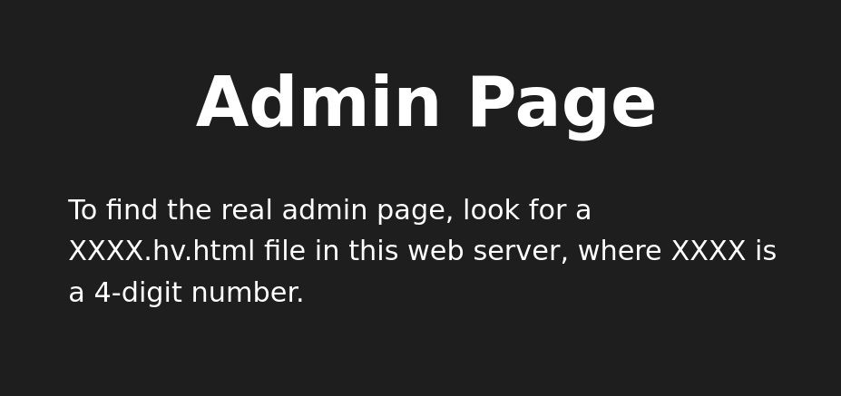진짜 관리자 페이지는 아니었고 힌트만 있었다.XXXX.hv.html을 찾아라, XXXX는 숫자 4자리이다.