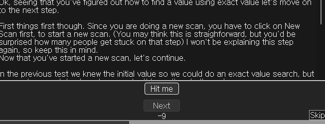 When it is done click 'Hit me'. You'll lose some of your health. (the amount you lost shows for a few seconds and then disappears, but you don't need that)