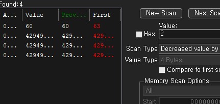 Now go to Cheat Engine, and choose 'Decreased Value' and click 'Next Scan'